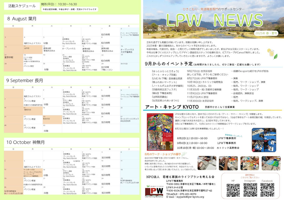 8月2日(土)、9月6日(土)にLPW下鴨事務所1階でワークショップ、
